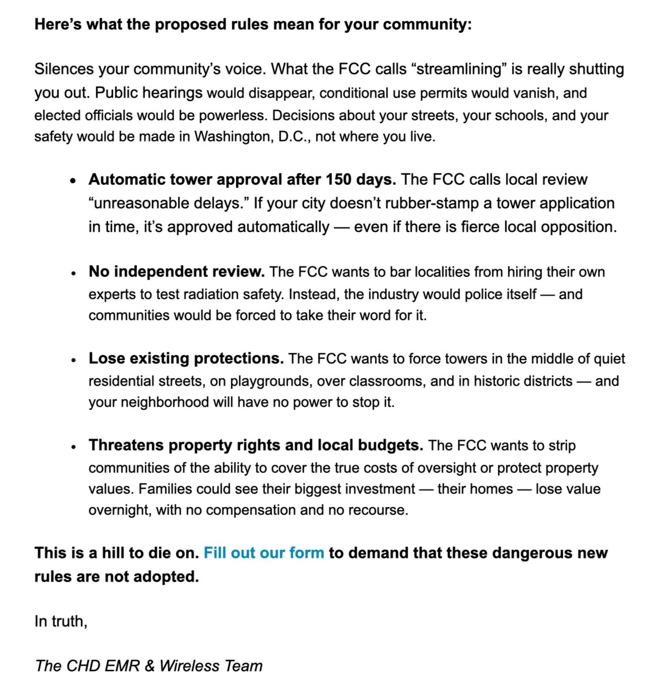 A must-watch interview: CHD’s telecom experts, Miriam Eckenfels and attorney Scott McCullough, exposing the FCC’s unchecked cell tower proliferation, federal power grab, & the threat to local control.